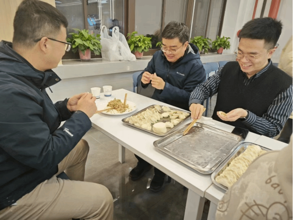 党委书记黄越、党委副书记韩冬、副院长宁昕及各年级辅导员也为同学们送上新年祝福,和同学们一边包饺子,一边交流,欢声笑语中,共同感受着新年的喜悦。