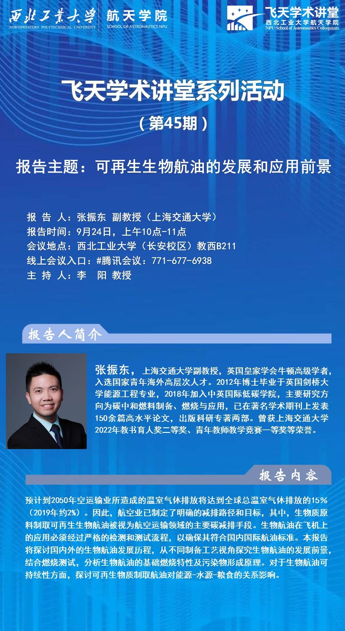 飞天学术讲堂系列活动(第45期)报告主题:可再生生物航油的发展和应用前景