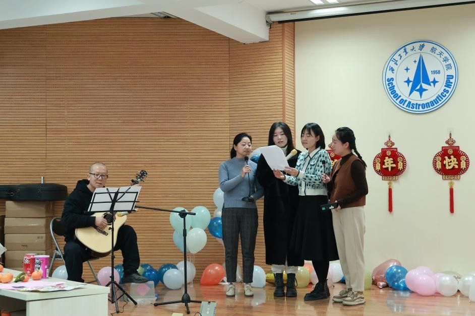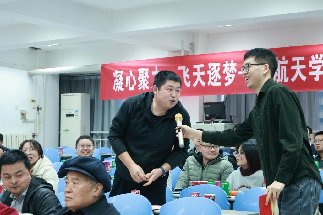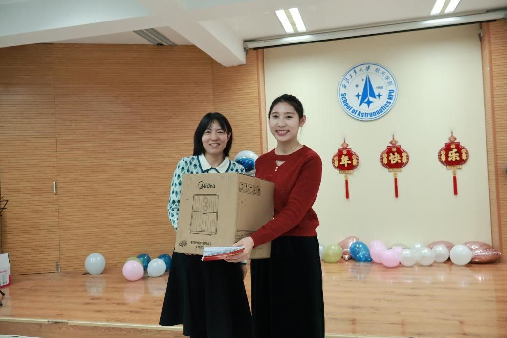 联谊会上,我们一起认识了航天新力量。由近两年新入职的十三位青年教师进行自我介绍,并为大家抽取新年礼物。