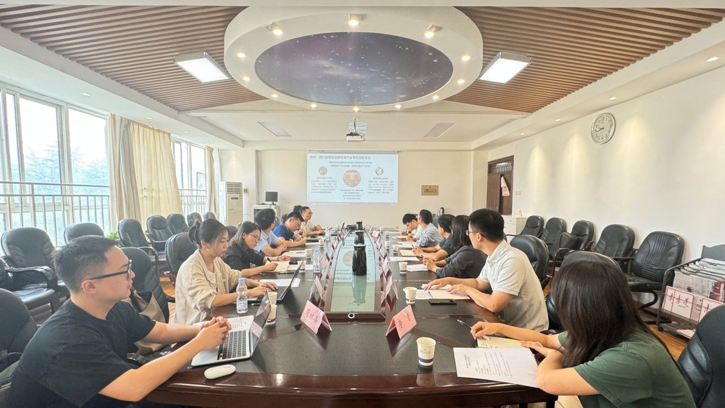 教师共同探讨航天产业相关知识产权申报审批、成果转化需求、人才培养等方面的问题。