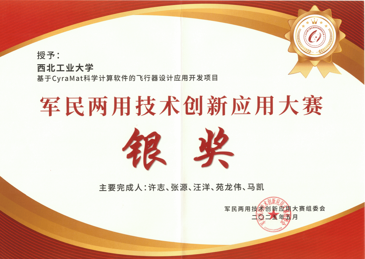 许志教授团队在大会核心板块——军民两用技术创新应用大赛中凭借《基于CyraMat科学计算软件的飞行器设计应用开发》项目斩获大赛银奖。