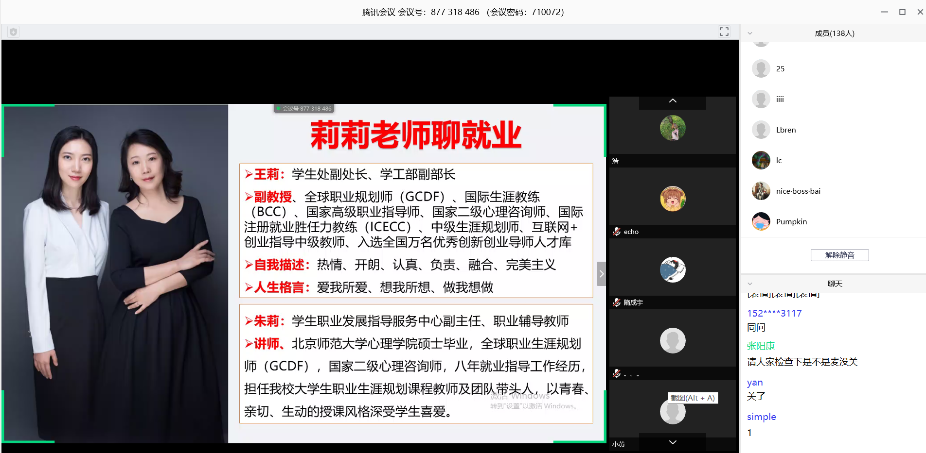 邀请学生职业发展指导服务中心王莉老师,采用线上的形式为同学们开展了一场别开生面的职业生涯辅导课程。