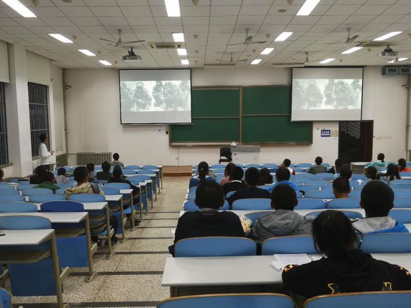 “携笔从戎铸军魂,参军报国正当时。”,2018年9月19日晚7:00,蕾丝视频 在长安校区教学西楼D102以“传承红色基因担当强军重任”为主题,组织学生进行征兵教育,并且观看了征兵宣传片。用军人的故事教育在校大学生,用榜样的力量鼓舞学生,发挥其激励作用,进一步增强学生参军报国的热情。